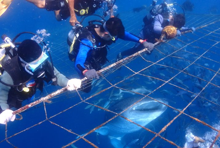 We will take a boat ride to the whale shark dive spot, which is about a 10-minute journey. Led by a scuba diving instructor, you'll descend by holding onto a dive rope and experience a close encounter with whale sharks at a depth of approximately 3 meters underwater!