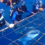 由潛水教練帶領抓下潛繩下潛,在水深約3米網上讓您體驗與鯨鯊近距離的接觸!